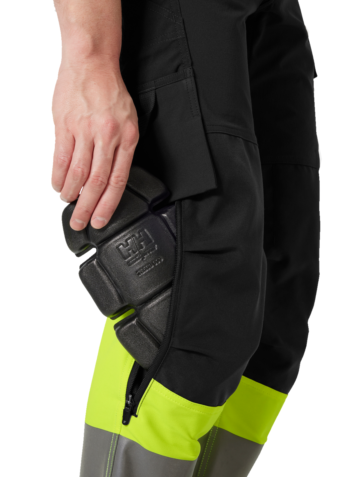 - EN ISO 20471:2013: 1|YKK® Zipper|Cordura® reinforcement fabric|AMANN threads|4-way stretch fabric|Broad center back belt loop for extra stability and strength|Gusset in crotch for freedom of movement|Thigh pocket with fastener closure and several compartments|Ruler pocket in Cordura® reinforcement fabric|Plastic covered metal buttons|Articulated knees for optimal mobility|Knee Pad position can be adjusted by 5cm for optimal mobility|Cordura® fabric reinforcement at knee and bottom leg|Knee Pad pockets accessible from the outside|Possibility to increase leg length by 5cm|ID card loop|bluesign® product