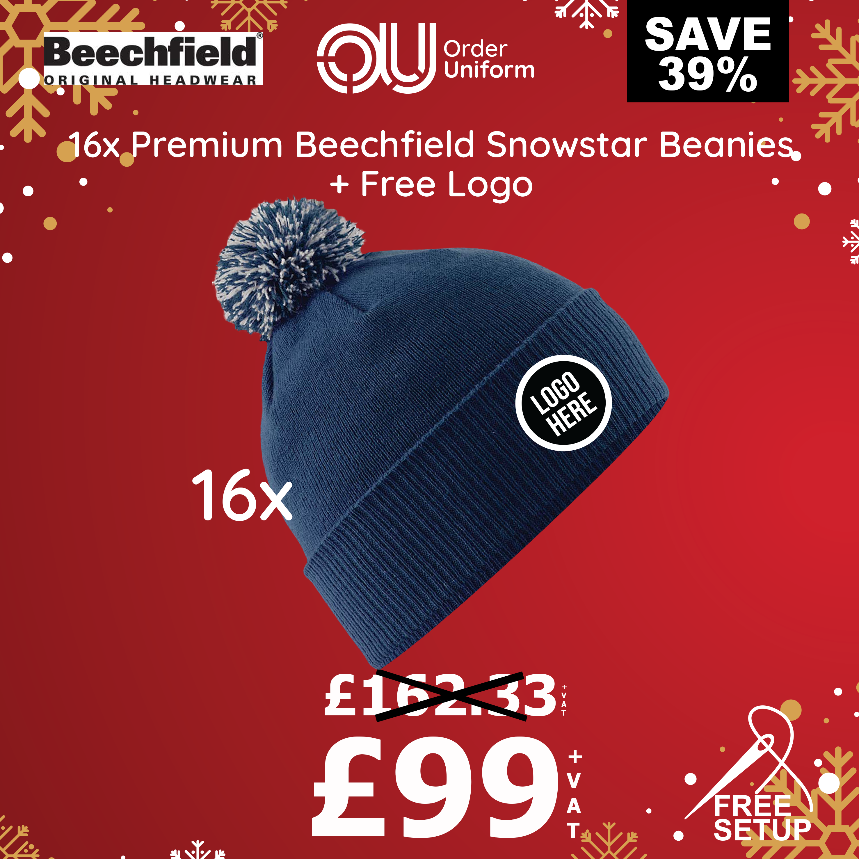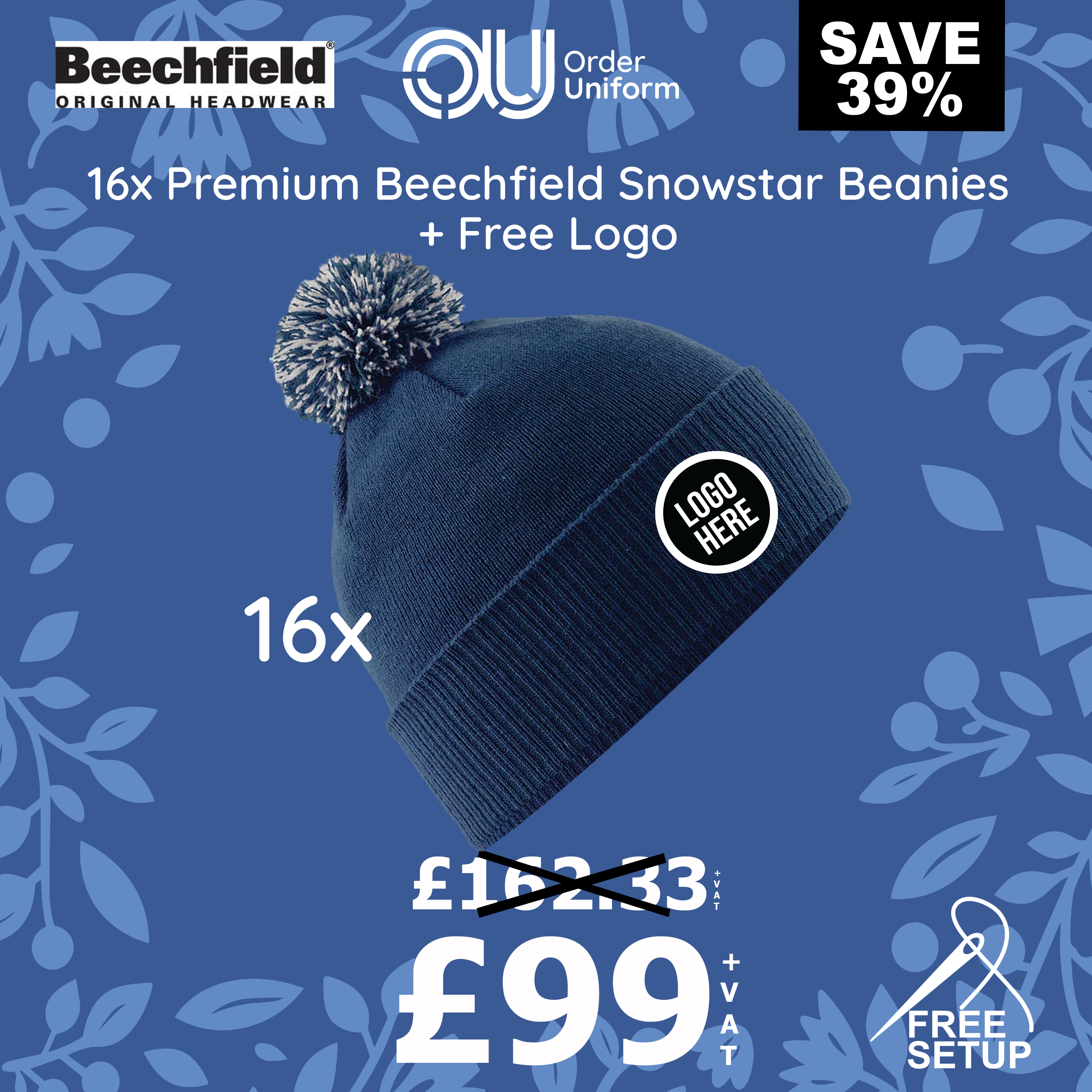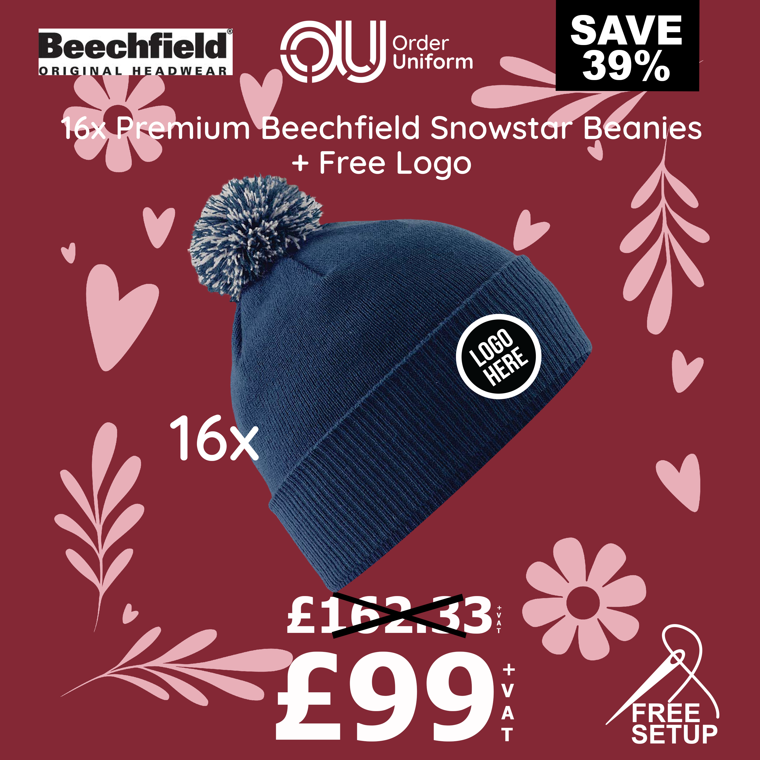 16x Beechfield premium snowstar beanie package includes embroidery + Free logo setup