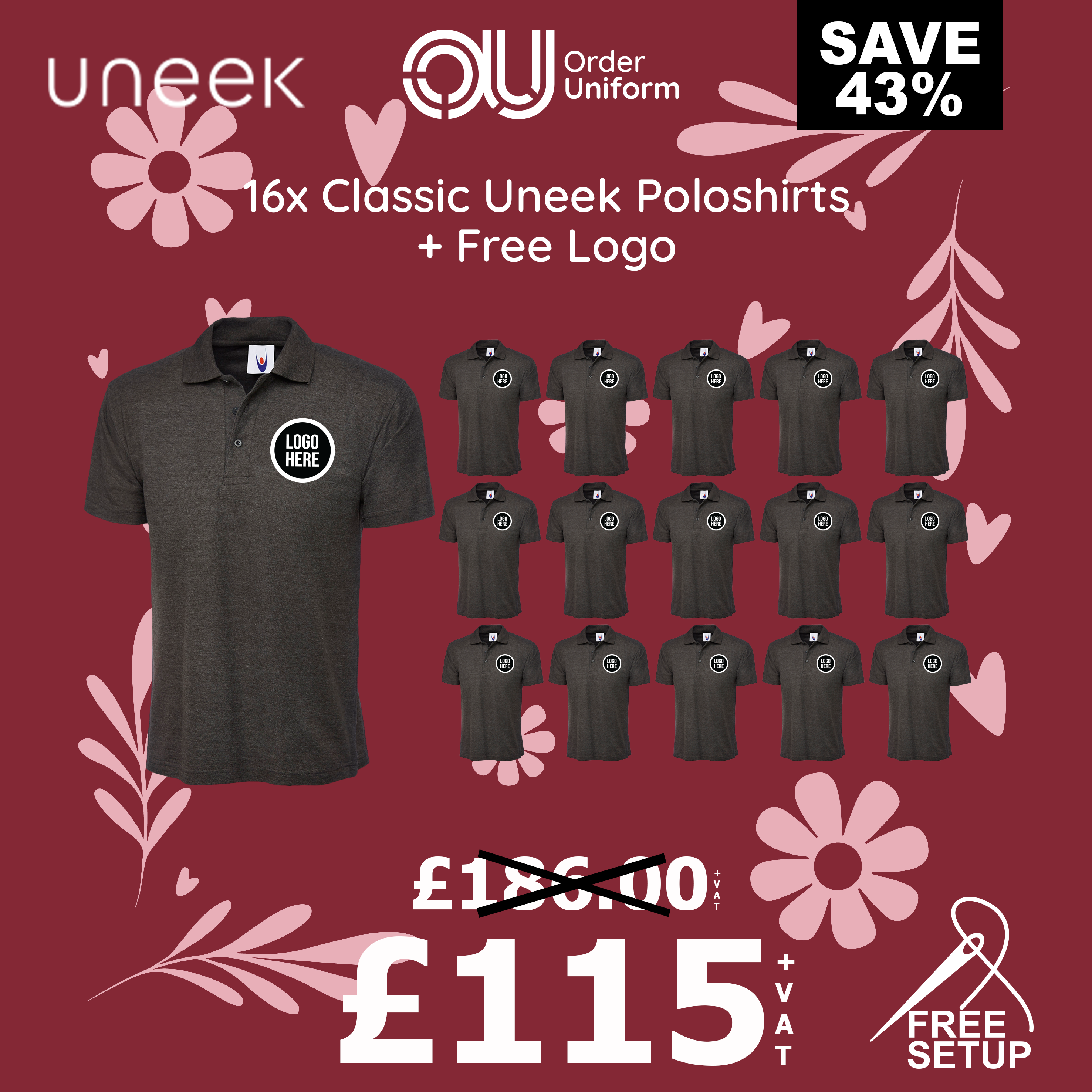 16x Uneek Classic Poloshirts + Free Logo