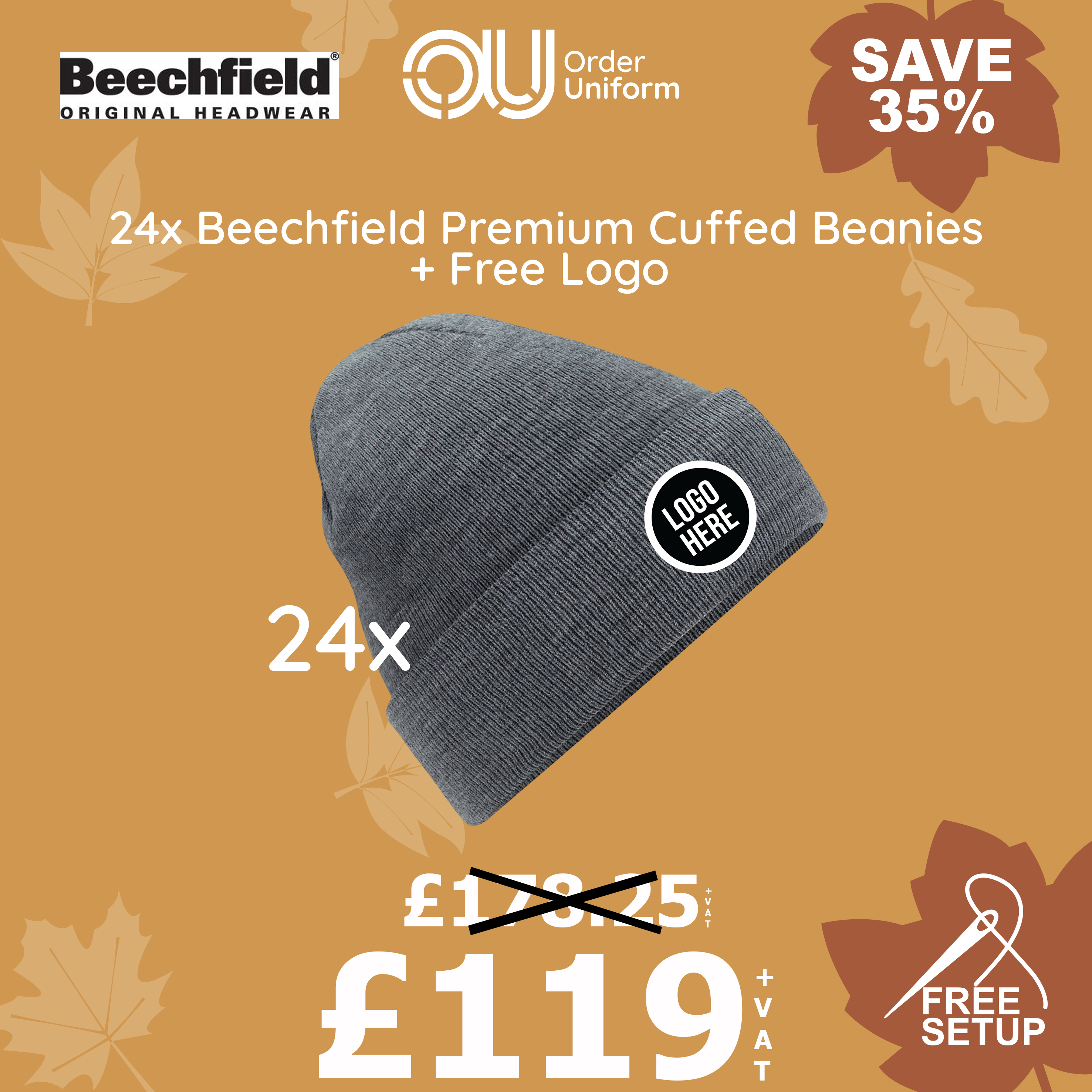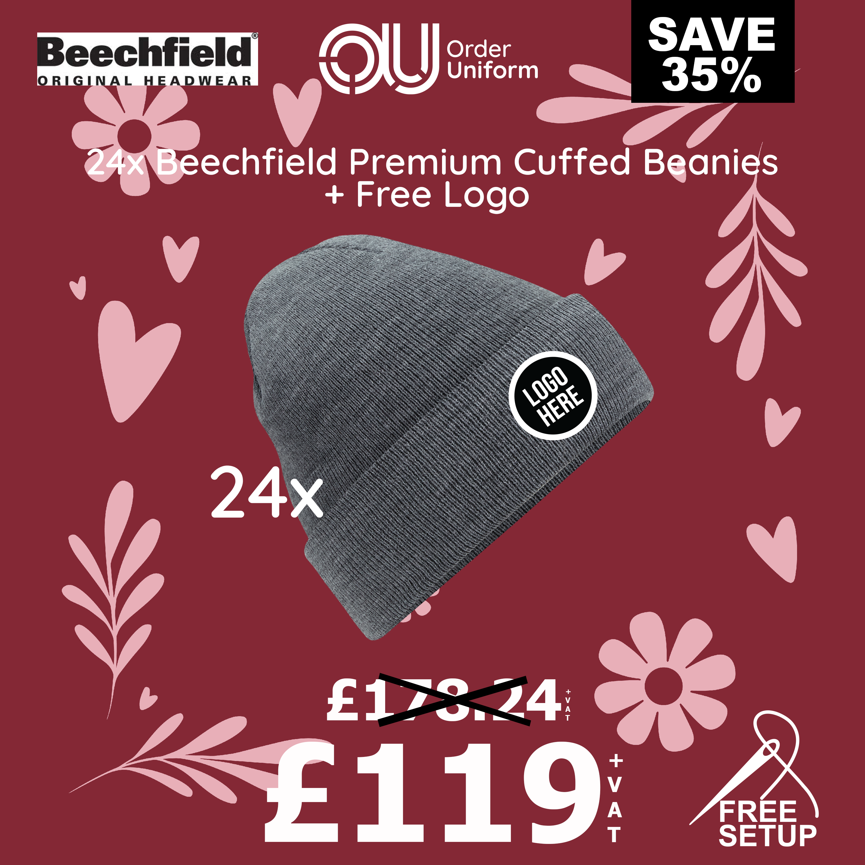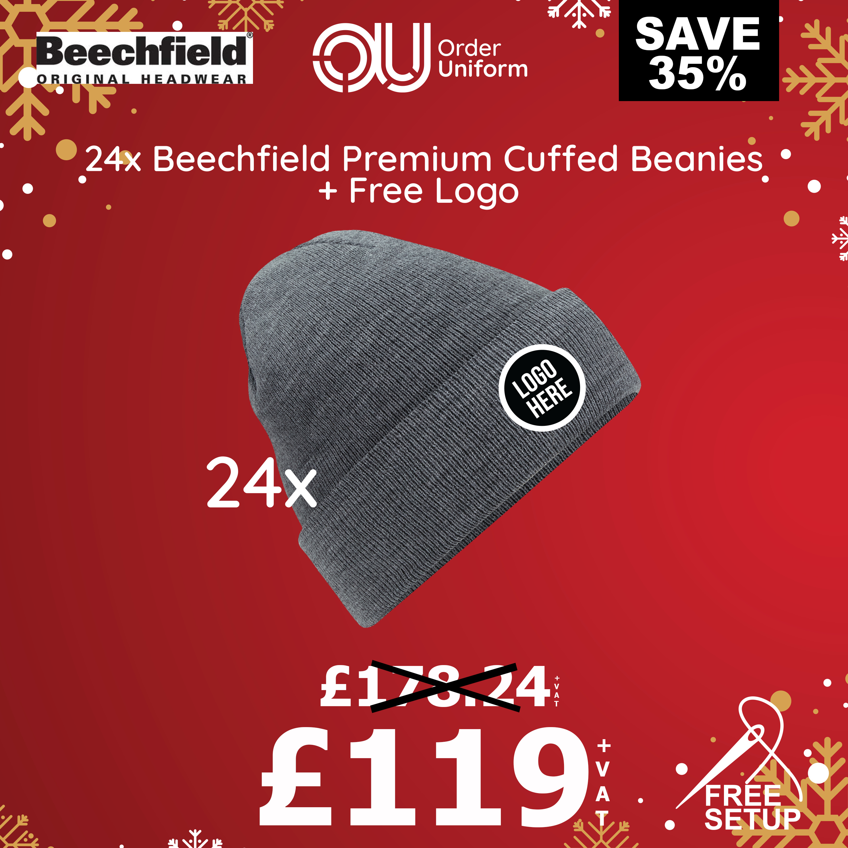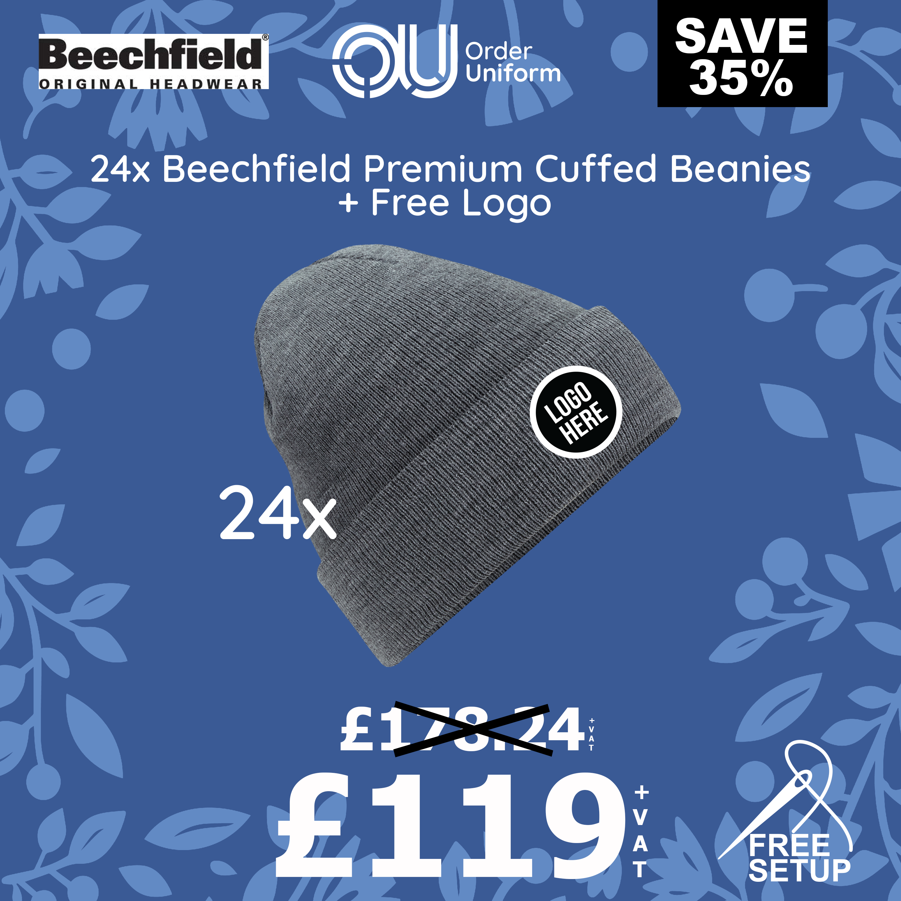 24x Beechfield cuffed beanie package includes embroidery + Free logo setup