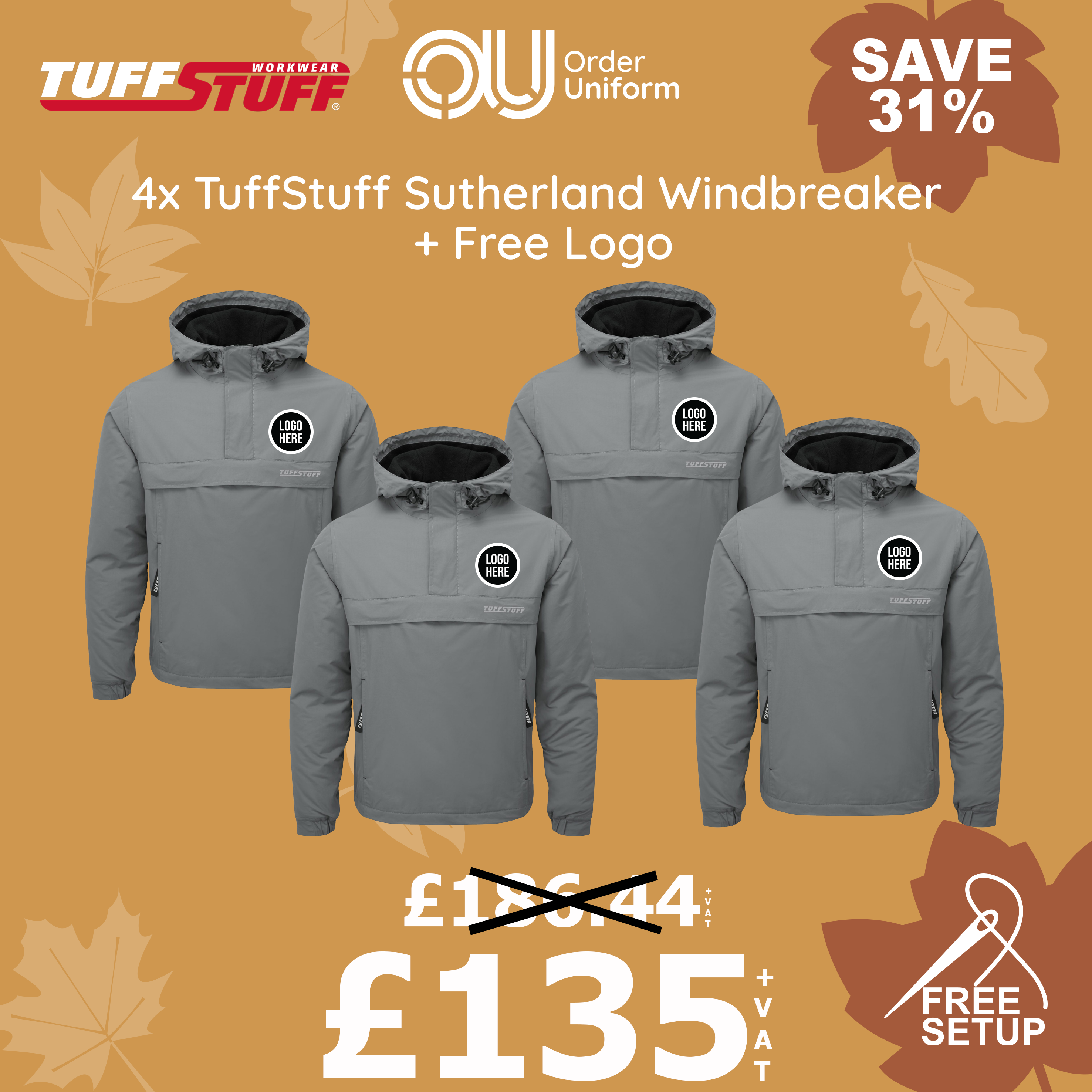 4x Sutherland Tuffstuff Windbreaker + Free Logo