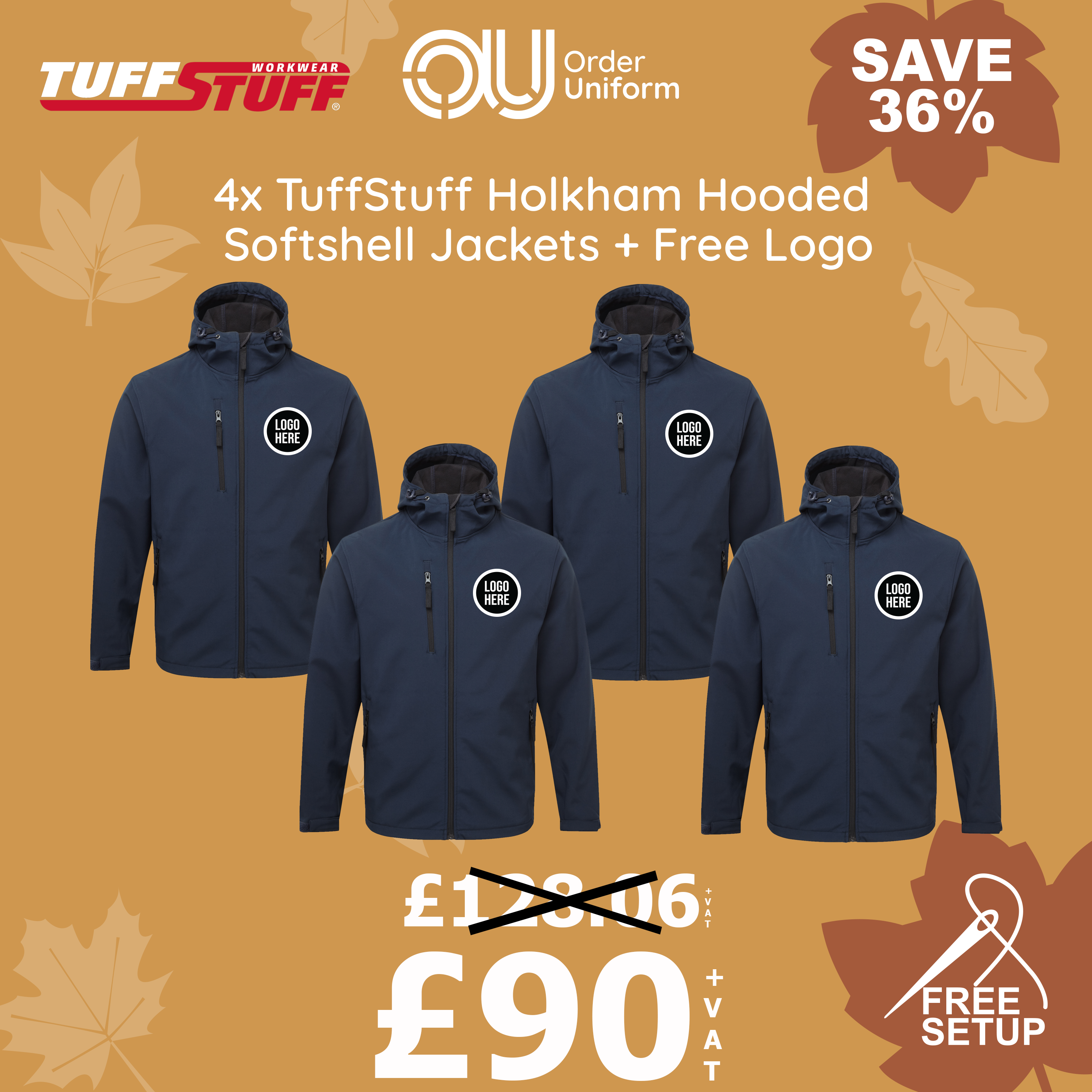 4x Holkham Hooded Softshell Jackets + Free Logo