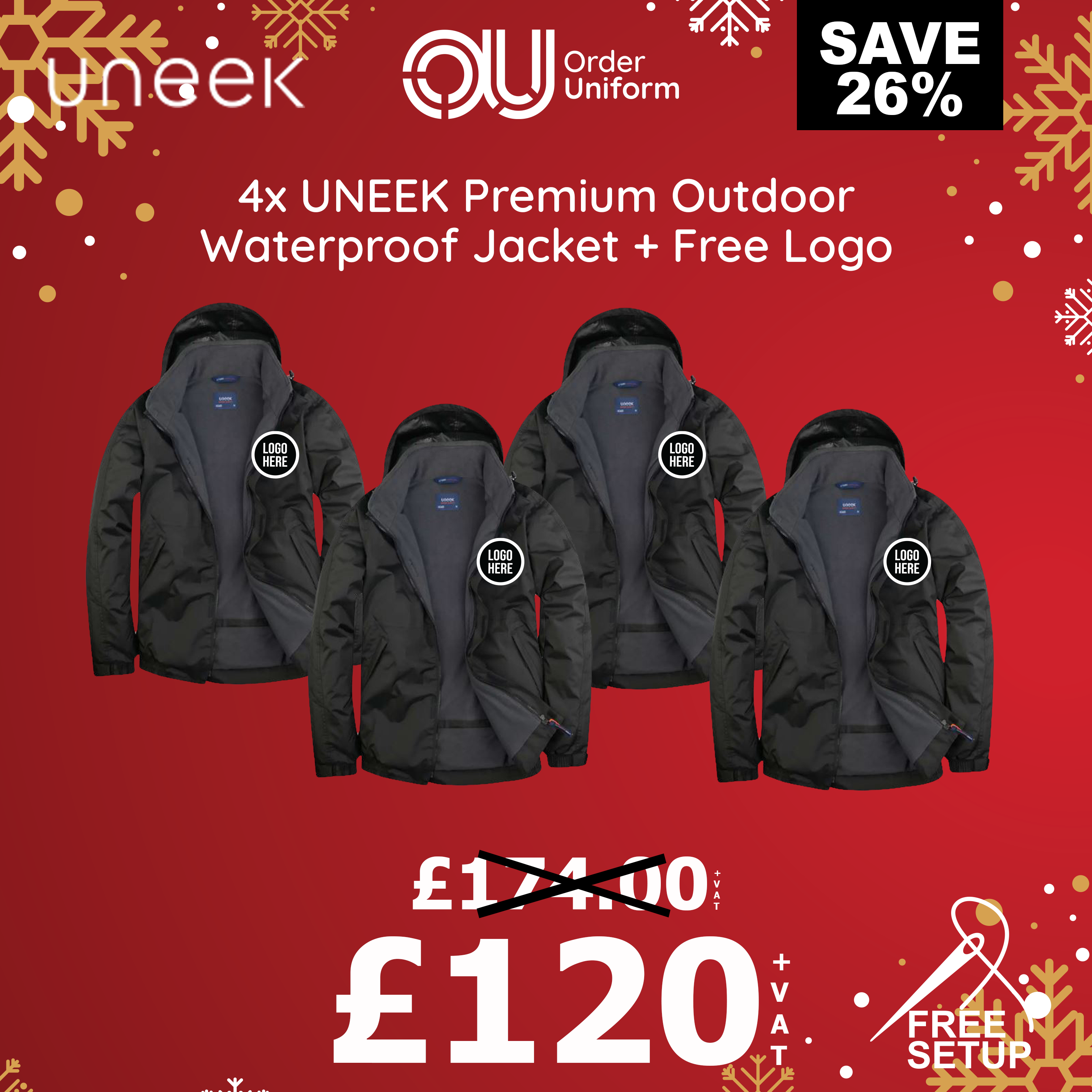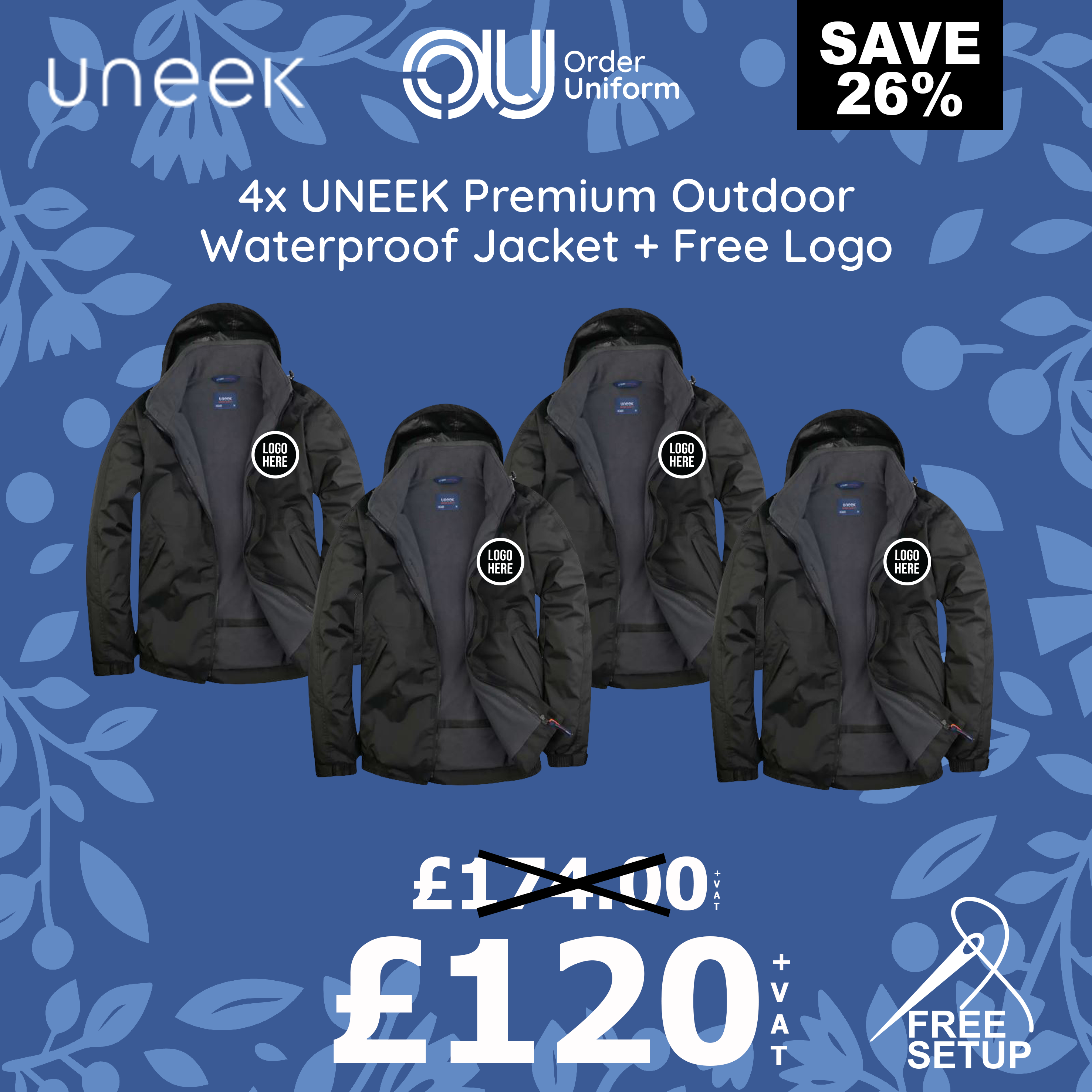 4x UNEEK Premium Outdoor Waterproof Jacket + Free Logo