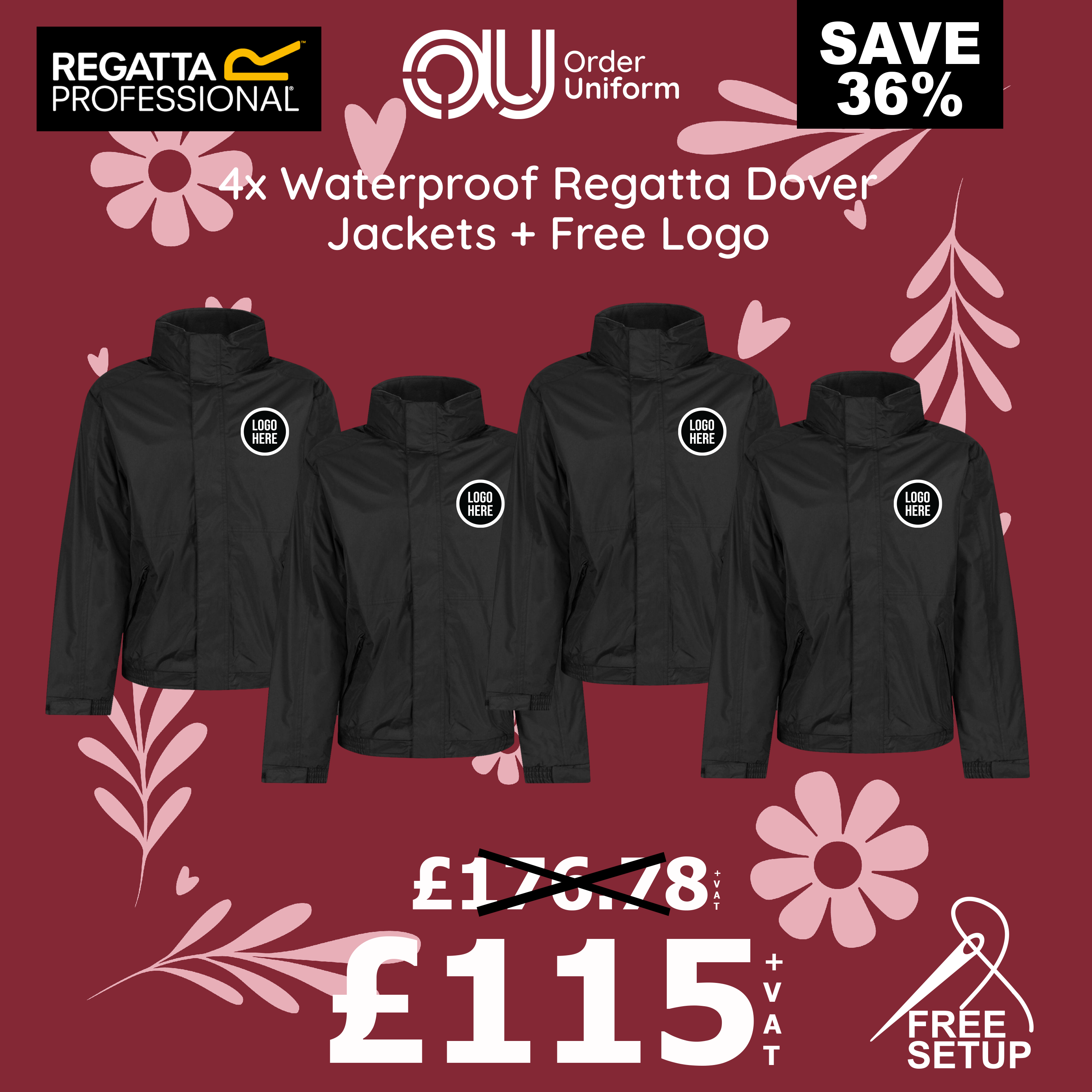 4x Waterproof Regatta Dover Jackets + Free Logo