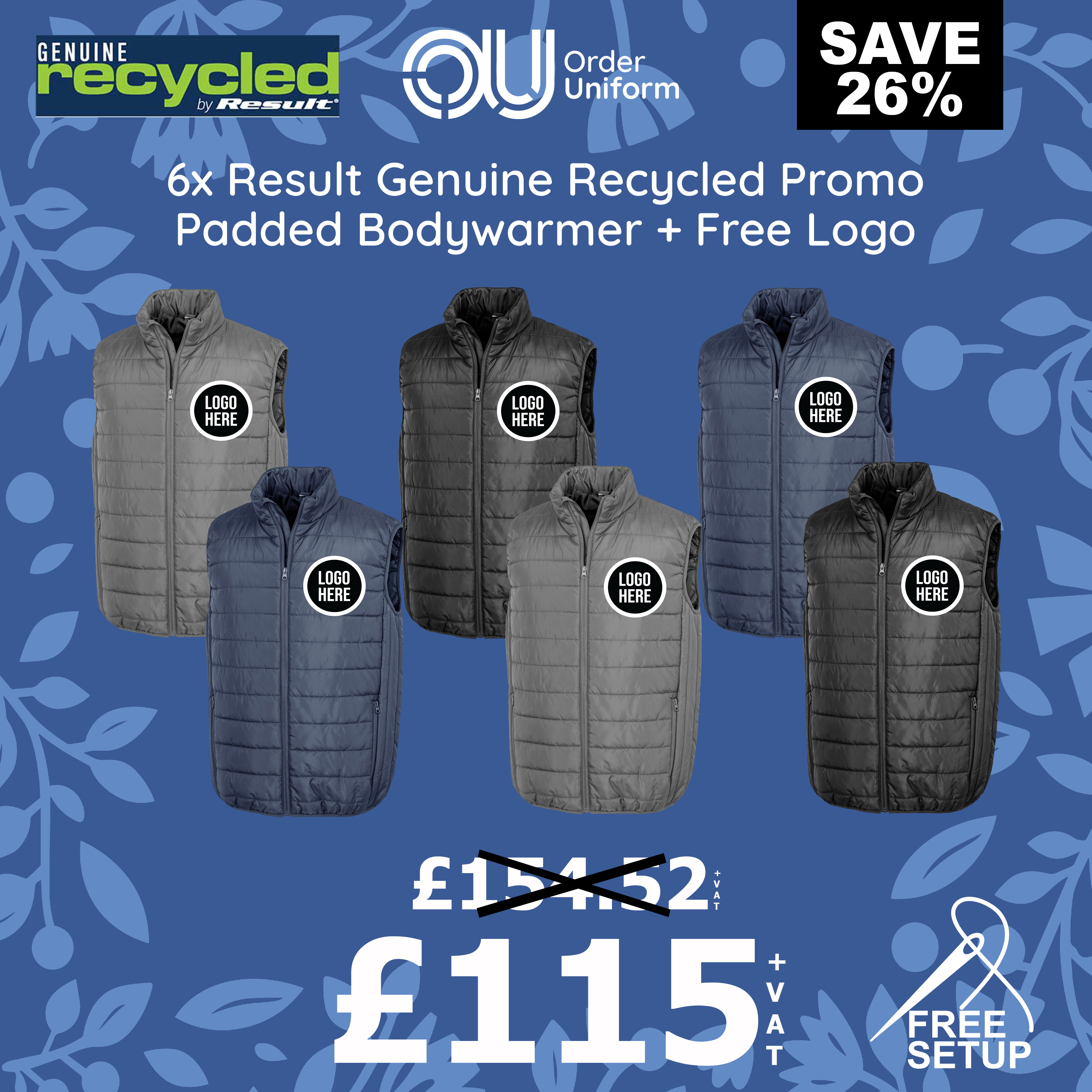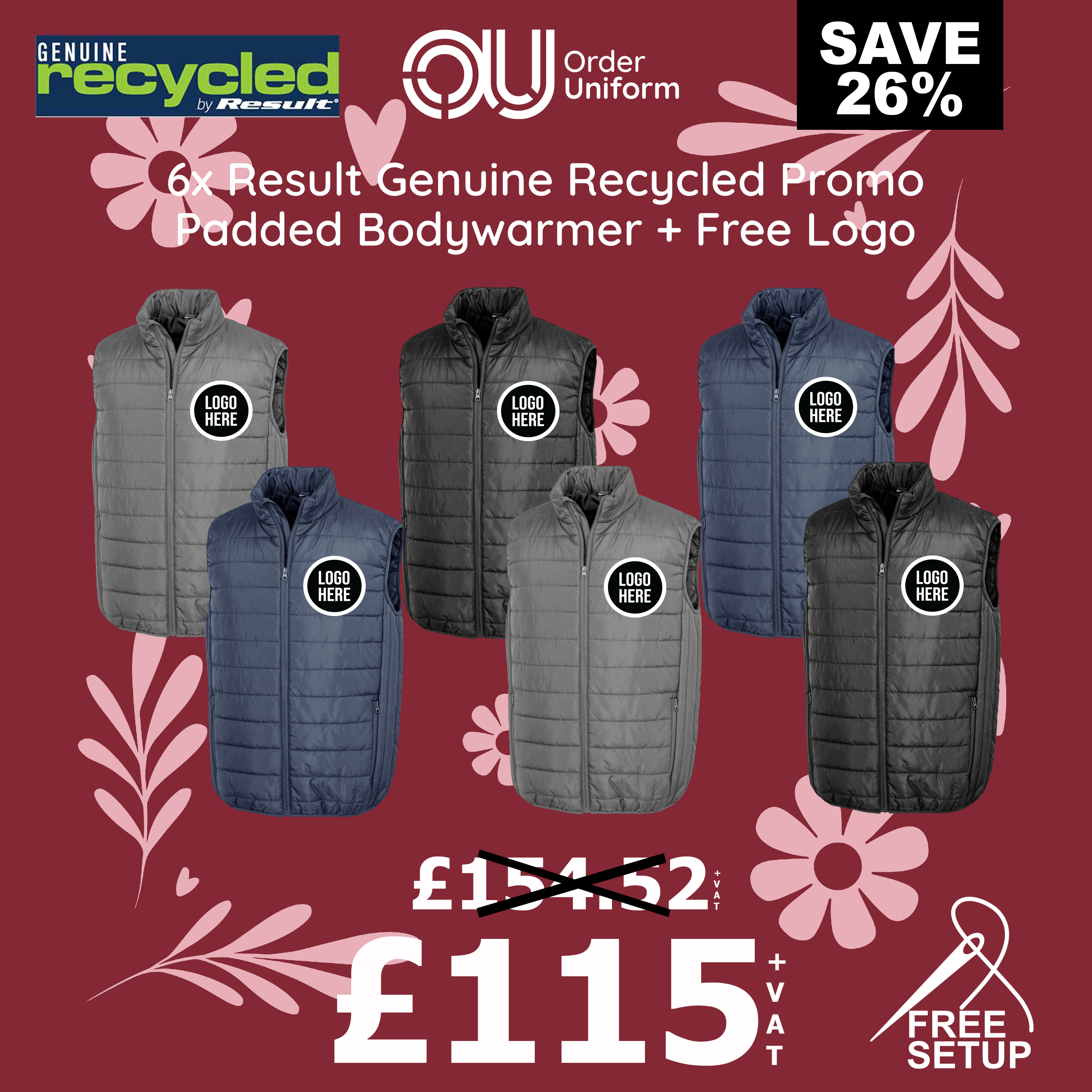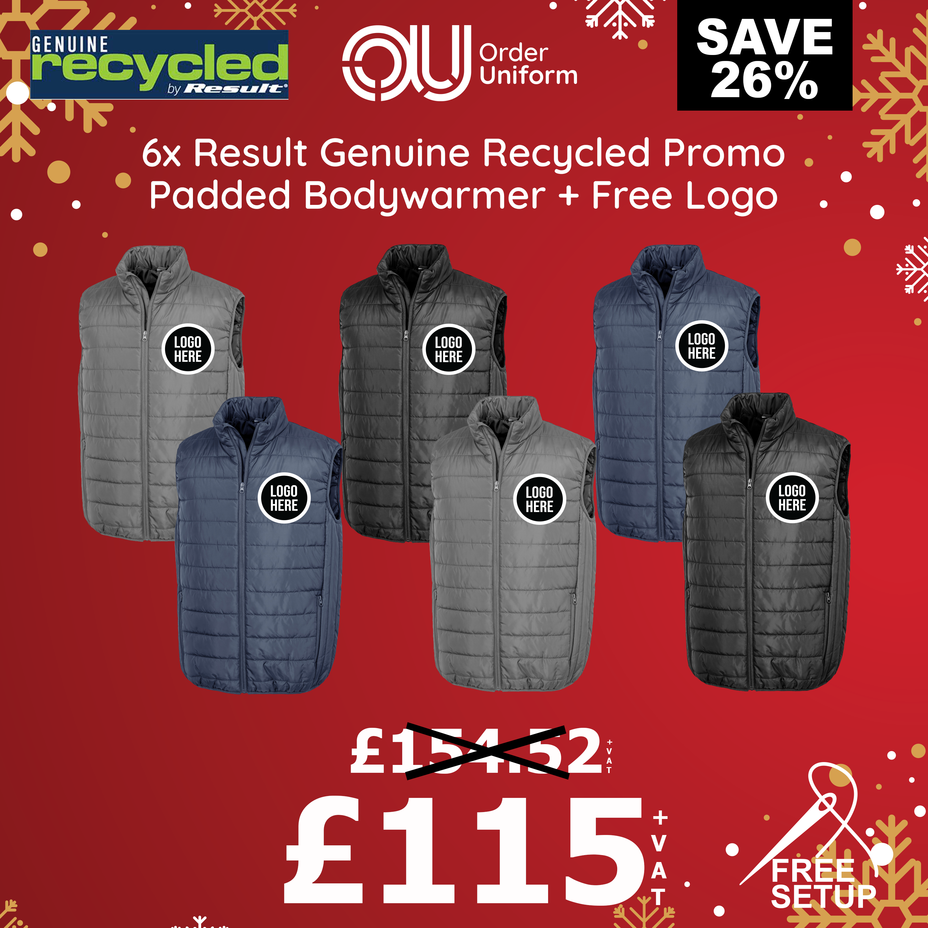 6x Result Genuine Recycled Promo Padded Bodywarmer + Free Logo