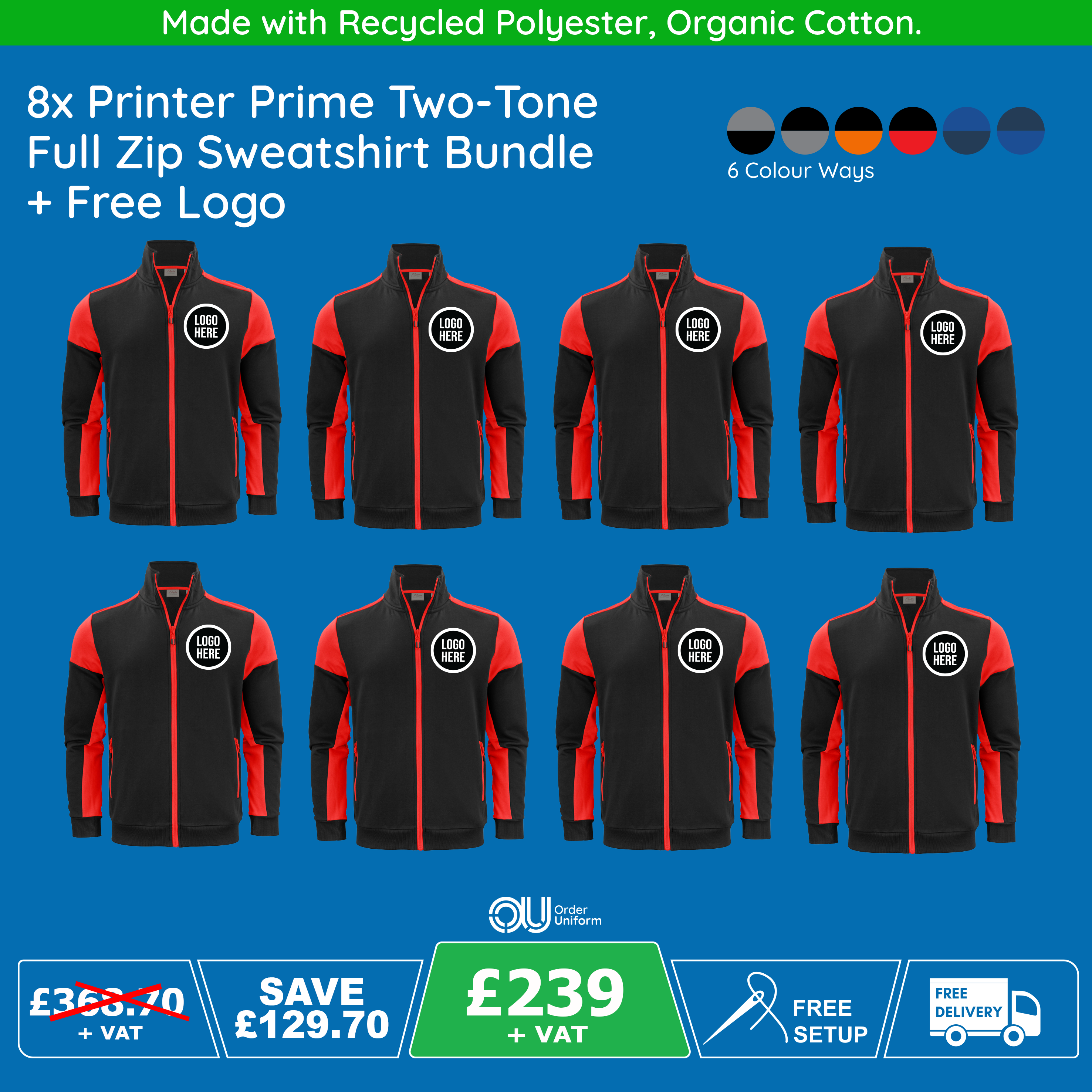 8x Printer Prime Two-Tone Full Zip Sweatshirt + Free Logo