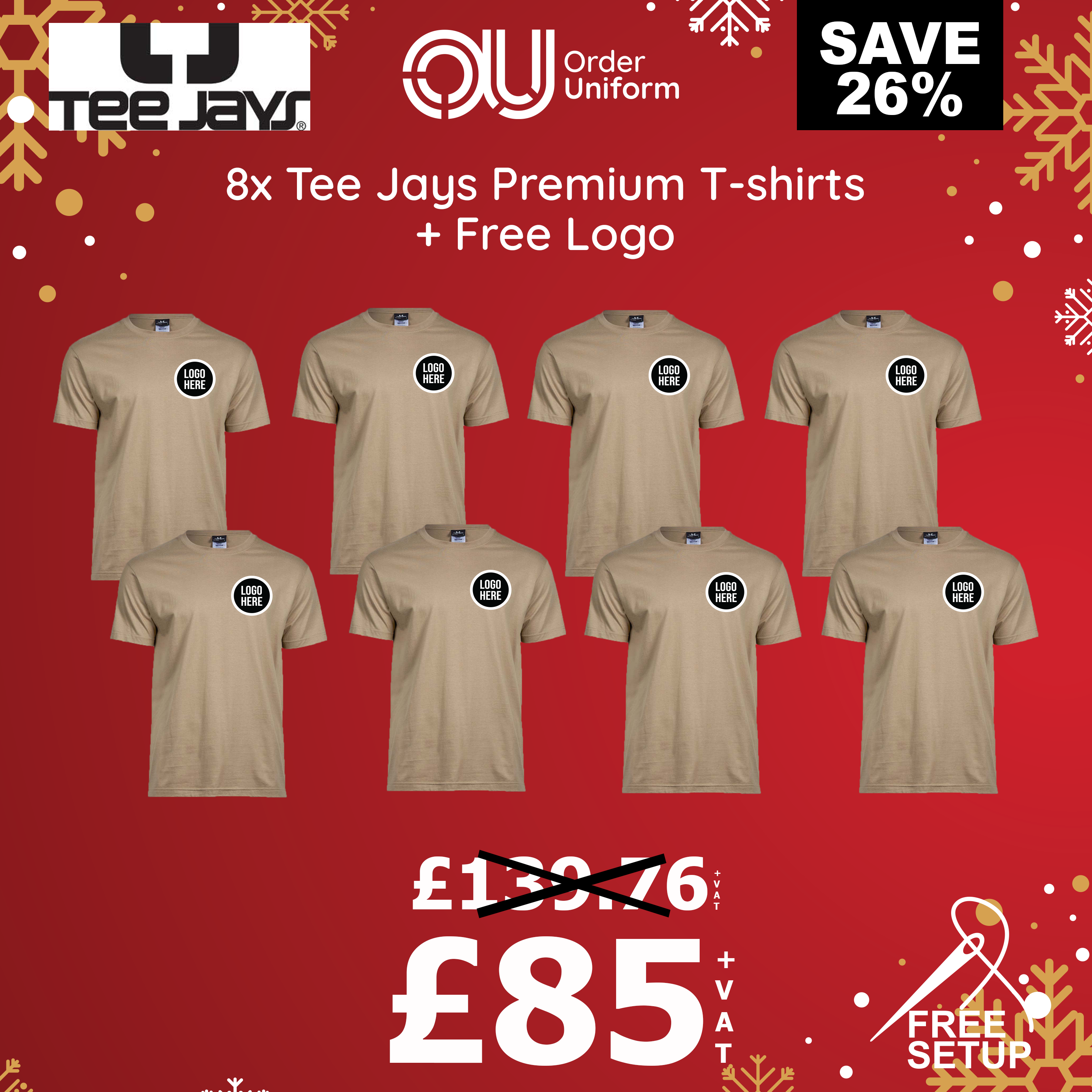 8x Tee Jays Sof T-Shirt + Free Logo