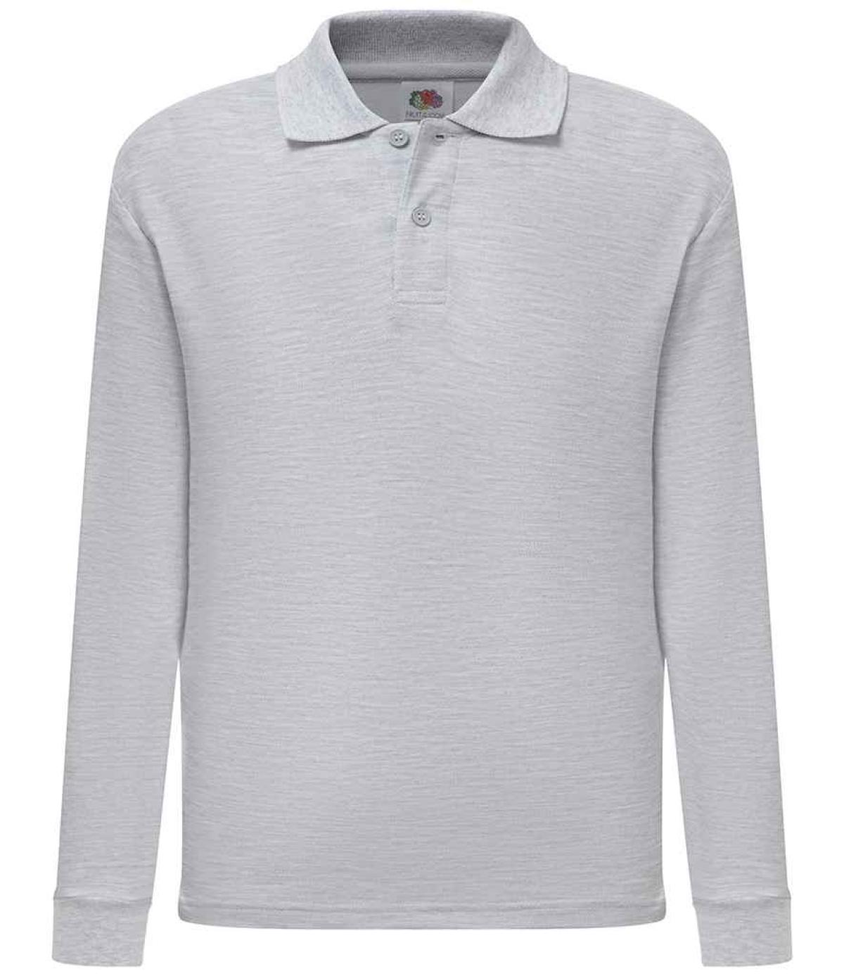 Fruit of the Loom Kids Long Sleeve Poly/Cotton Piqué Polo Shirt - Heather Grey