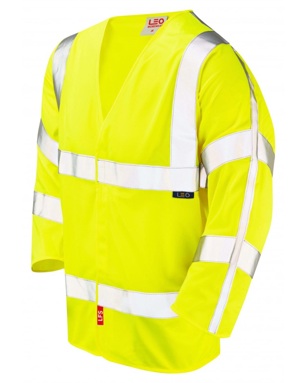 FEATURES: Self-coloured flame retardant binding, flame retardant hook and loop, garment conforms to 25 wash cycles, Retromox FR flame retardant reflective tape, EN 14116 knitted polyester, covered seams to prevent flaming debris FABRIC: EN 14116 knitted polyester COLOUR: Hi-Vis Yellow TRIM COLOUR: Self colour FASTENER: Flame retardant hook and loop SIZES: S-6XL REFLECTIVE TAPE: Retromax flame retardant ISO 20471 CLASS: 3 LENGTH: 77-82cm