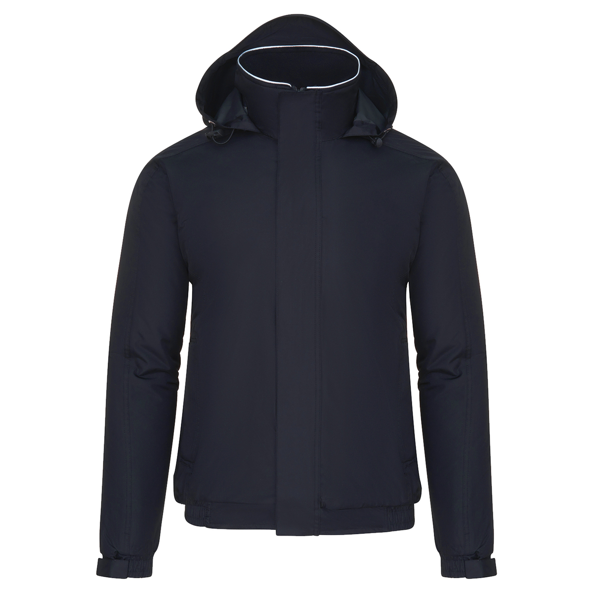 Waterproof Coated Fabric Fleece Lined Collar Warm lined insulated sleeves Hi-Vis trim to collar Concealed hood with adjuster, Stormflap with hook and loop fastening Adjustable cuffs, 2 lower zipped pockets, Inner patch security pocket Concealed zip entrance in lining for embroidery access 220gsm anti-pill luxurious fleece lined body