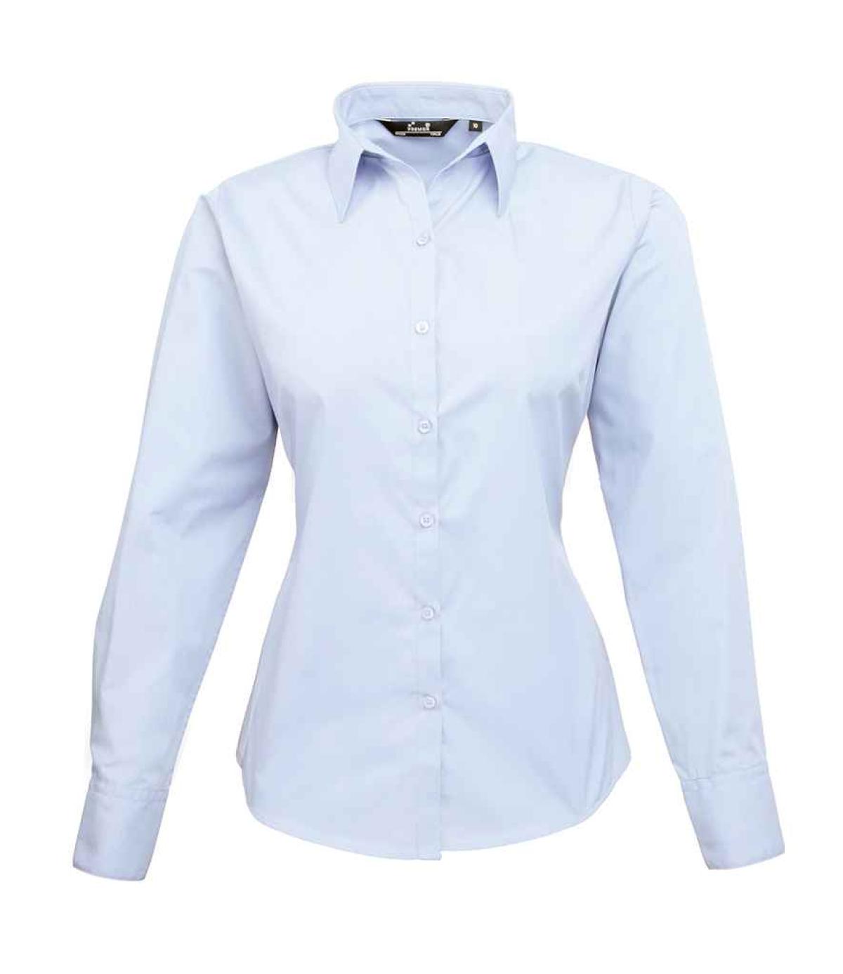 Premier Ladies Long Sleeve Poplin Blouse - Light Blue