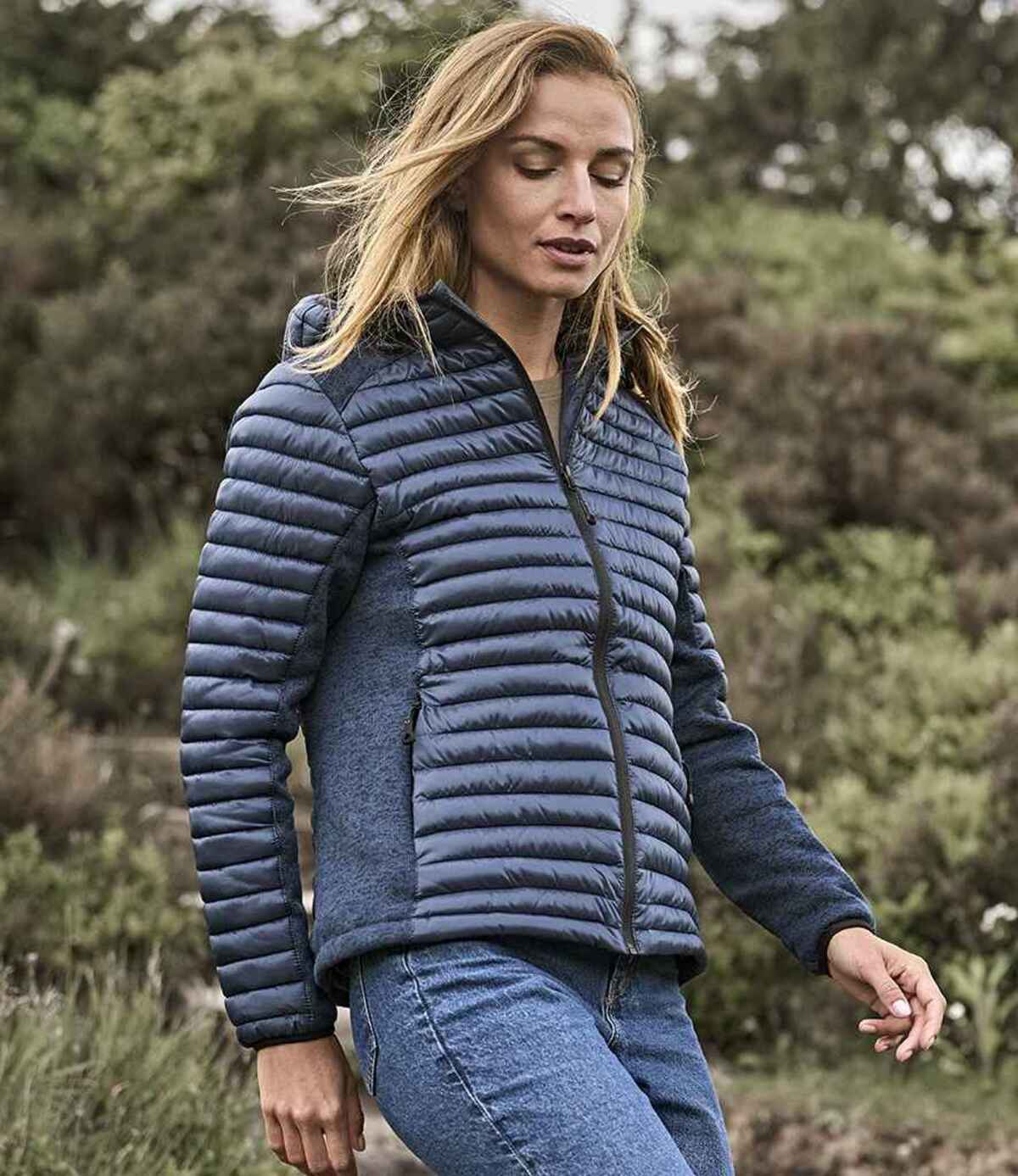 Tee Jays Ladies Crossover Hooded Padded Outdoor Jacket - Navy/Navy Melange