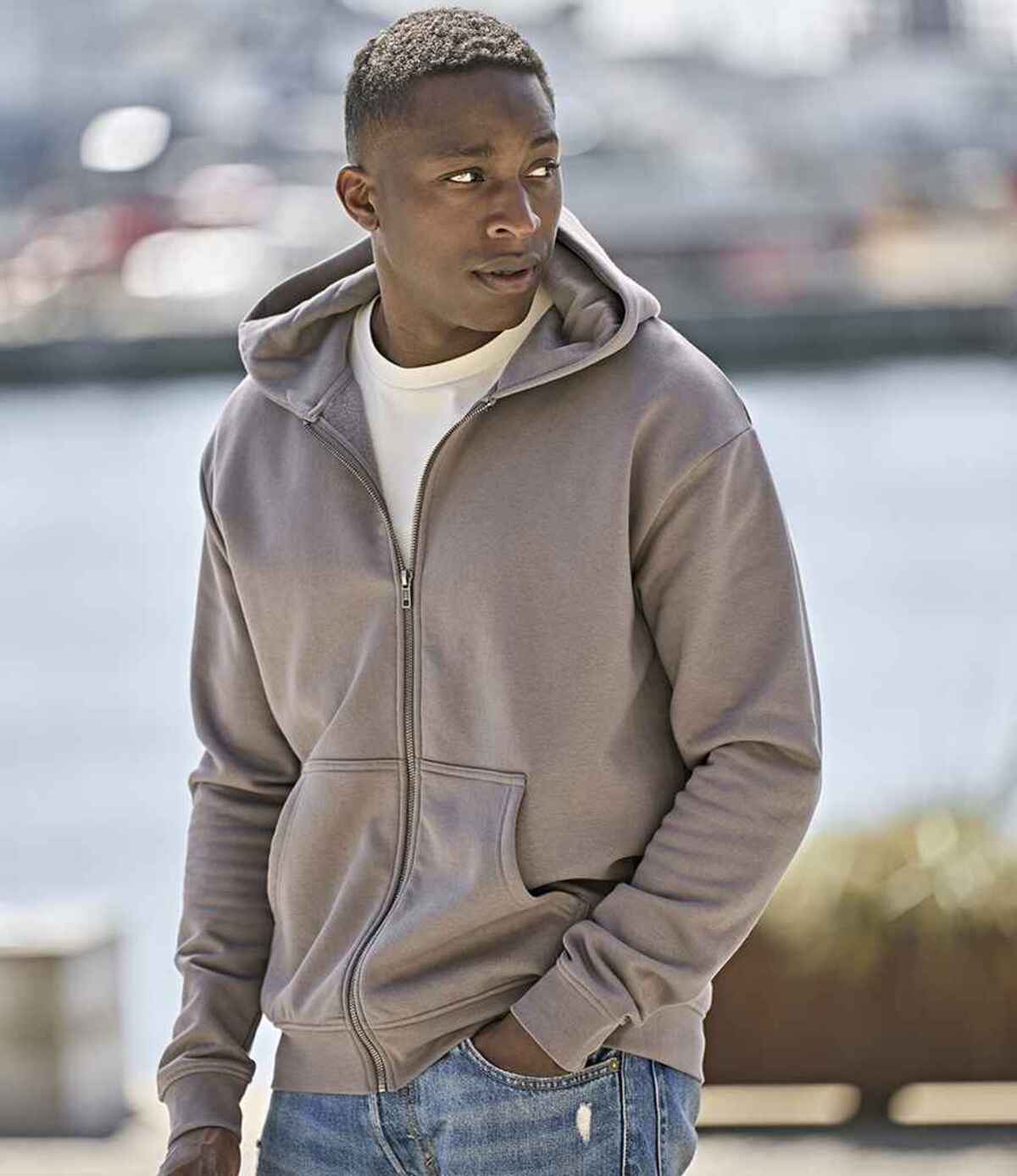 Tee Jays Unlabeled Hooded Full Zip Sweatshirt - Cement