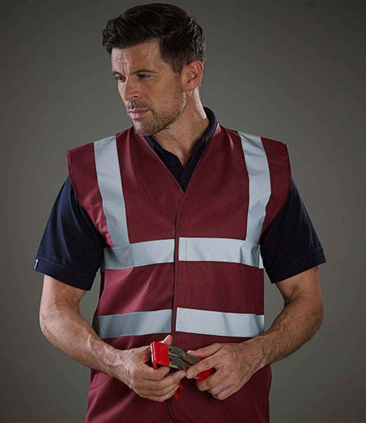 Yoko Hi-Vis Two Band and Braces Waistcoat - Maroon